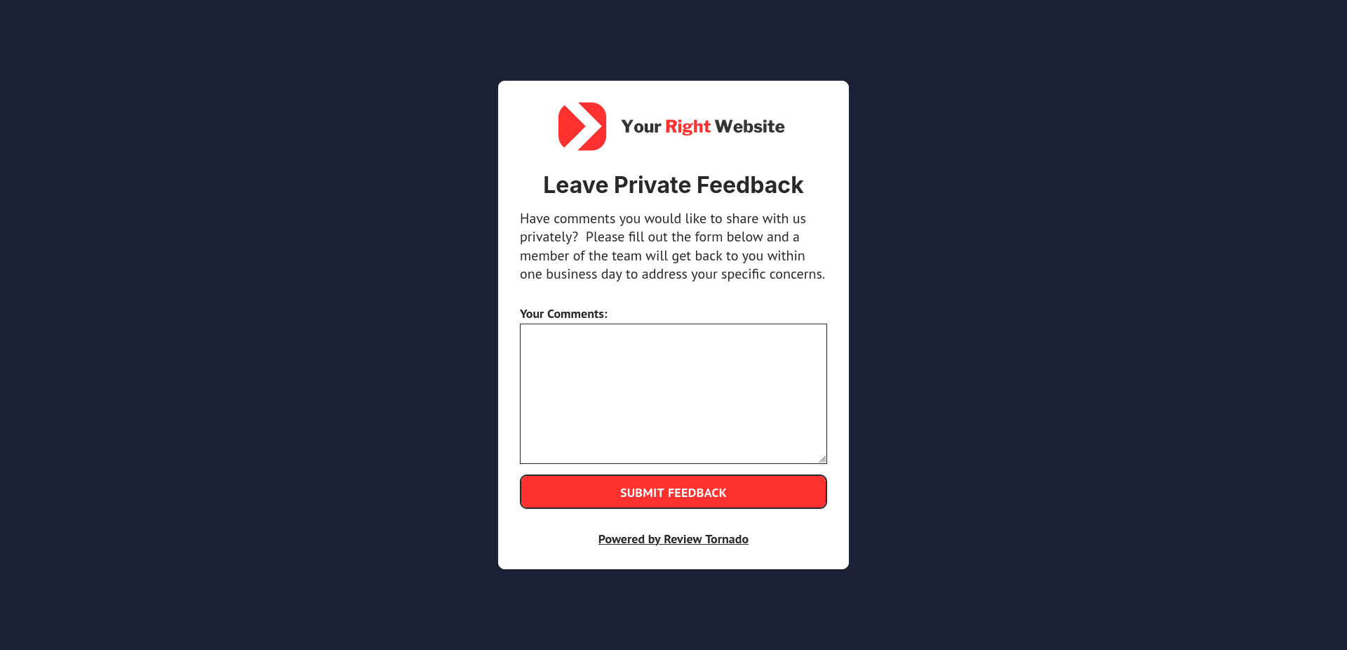 When your customers click the Leave Private Feedback option, they’ll see a form like this: